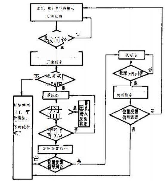 系統在程控或手控運行方式且處于清洗過程時,若出現收球網前后差壓越限,系統自動轉入收球狀態,進行反洗,這樣可以清除附在收球網上的污物.保護收球網。