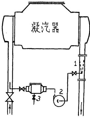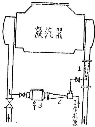 水力噴射器在現場可自行加工易于實現,對開式循環的電廠,由于冷卻水入口壓力低,采用帶噴射器的系統較為經濟,特別是當廠內有壓力水源(大于4公斤/厘米2)時,就更適用。過去國內幾個試驗電廠大都采用此系統。