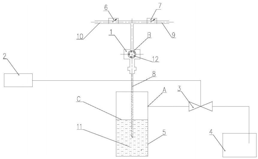 儲液器,其內(nèi)承裝有液體,儲液器上具有入口;裝球室,其內(nèi)具有容置膠球的腔體連通管路,其與裝球室連通,并自裝球室延伸至儲液器內(nèi)的液體液面以下;進球管路,其與裝球室連通;出球管路,其與裝球室連通;壓力介質(zhì)供給裝置,其通過管路與儲液器的入口連接,以向儲液器內(nèi)輸送壓力介質(zhì)。