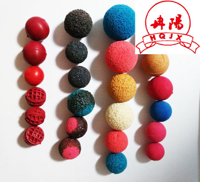2、金剛砂膠球: 金剛砂膠球分為全金剛砂膠球和半金剛砂膠球兩種。金剛砂膠球適用于清除各種結(jié)垢沉積較多的管道,但對(duì)管子有傷害,一般不長(zhǎng)期使用,特別銅管更慎用。有效去除硬質(zhì)結(jié)垢,如:碳酸鈣。適用于鋼管、不銹鋼管換熱器。