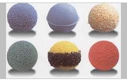 金剛砂膠球:金剛砂膠球分為全金剛砂膠球和半金剛砂膠球兩種。金剛砂膠球適用于清除各種結垢沉積較多的管道,但對管子有傷害,一般不長期使用,特別銅管更慎用。有效去除硬質結垢,如:碳酸鈣。適用于鋼管、不銹鋼管換熱器。金剛砂膠球不可連續在水中長期使用,建議使用兩次后,拿出來放在通風處晾干(不可爆嗮) ,涼3-5天時間,金剛砂膠球的使用壽命會更長。