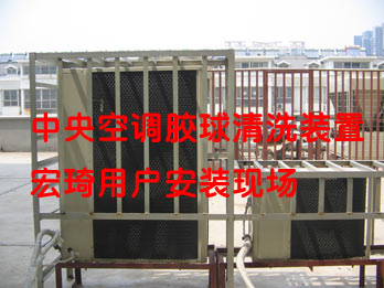 1、全自動在線清洗裝置是提高制冷機組熱效率的重要設備。主要由收球網、膠球循環泵、裝球器、程序控制系統、清洗膠球及閥門管路等部件組成。它借助水流的作用將直徑略大于冷凝器冷卻管內徑的清潔膠球擠過冷卻管,對冷卻管內壁進行反復擦洗,并把雜質帶出,從而提高冷卻管清潔度,避免垢下腐蝕,延長冷卻管使用壽命。該裝置可在機組不停機、不減負荷的條件下使用。