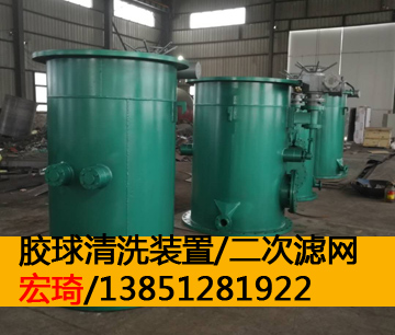 膠球清洗裝置原理是將略大于管子內徑的彈性膠球在在循環水的作用下通過冷凝器管,膠球前產生噴射水流,同時膠球摩擦管壁,從而起到清洗污垢的作用。因此,保證系統運行可靠、高的收球率、使膠球順利通過冷凝管并有確實的擦洗、讓每一根冷凝管有均等的清洗頻率、確保膠球的摩擦不損傷管壁等,成為膠球清洗裝置的技術關鍵。先將比重與水相近(0.98-1.02)的膠球加進裝球室后,啟動膠球泵,膠球在比循環水壓力略高一點的水流帶動下進入凝汽器水室進口,隨即同循環水混合并流向水室而進入冷凝管,由于膠球輸送管出口朝下,故球分散均勻進入凝汽器冷凝管。
