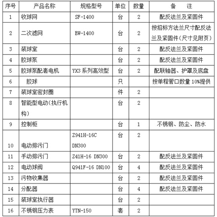 6.1每臺機(jī)組配1套膠球清洗裝置,1套膠球清洗裝置主要包含以下供貨項目: