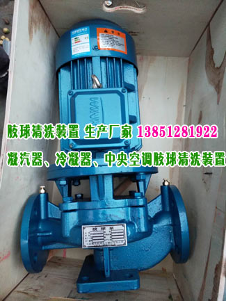 首先在收球網(wǎng)選型及定制上,認(rèn)真確認(rèn)好相關(guān)技術(shù)參數(shù),如收球網(wǎng)的格柵間距6mm,誤差不超過±0·4mm,活動網(wǎng)板與固定網(wǎng)板間的間隙均勻,網(wǎng)板關(guān)到位后間隙不得大于4mm,濾網(wǎng)材質(zhì)、網(wǎng)板和主軸材質(zhì)用ICr18Ni9Ti,防止生銹卡球等。膠球泵選型時,泵出口壓力必須高于2臺循環(huán)水泵同時開啟時的系統(tǒng)水壓力。為此選用JQ25一22膠球泵,其揚(yáng)程22m,流量100m3/h。在進(jìn)行膠球清洗裝置安裝時,同步打開凝汽器兩端的水室,對水室內(nèi)所有拐角和死區(qū)進(jìn)行封堵。