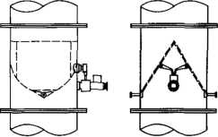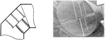 由于現(xiàn)場(chǎng)空間有限,不可能在收球網(wǎng)上方留出相當(dāng)?shù)闹惫芏,因此,在凝汽器出水彎管段中水平焊接一不銹鋼折流板,見圖3。該折流板位于彎管段中心線處,將循環(huán)水流一分為二,用以規(guī)整彎管內(nèi)循環(huán)水流,使循環(huán)水能夠均勻地流經(jīng)收球網(wǎng),以利于膠球收集。
