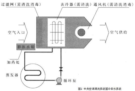 空氣調(diào)節(jié)系統(tǒng)是不容忽視的關(guān)鍵部位見圖245冷凝器系統(tǒng)的清洗范圍冷凝器系統(tǒng)的清洗范圍包括冷卻水系統(tǒng)冷凝器冷卻塔及相關(guān)水管道冷凍水系統(tǒng)蒸發(fā)器風(fēng)機(jī)盤管/表冷器水側(cè)及相關(guān)管道循環(huán)風(fēng)系統(tǒng)過濾器風(fēng)機(jī)盤管/表冷器風(fēng)側(cè)。