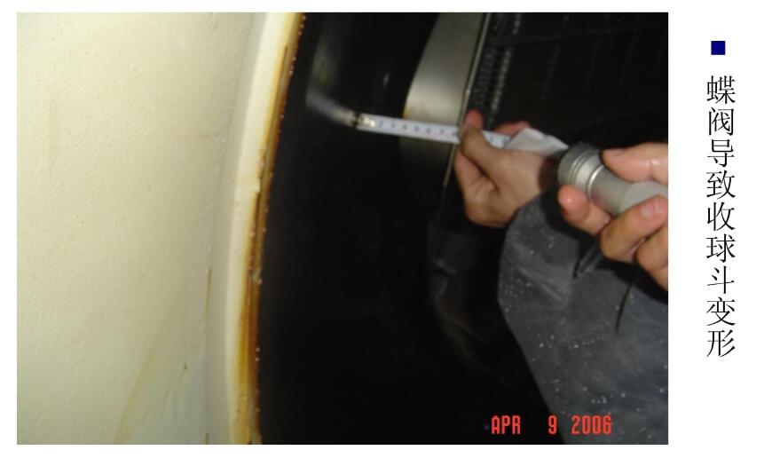 3.回水蝶閥碰收球網(wǎng),收球斗變形。