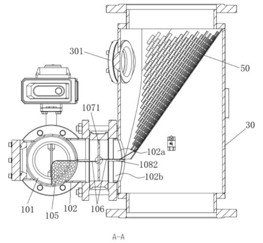 捕球?yàn)V網(wǎng)的出口端連通用于在膠球和水流進(jìn)入出水管時(shí)利用壓差將膠球回收至球水分離