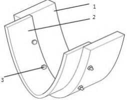 故經(jīng)過題攻關(guān),發(fā)明了收球網(wǎng)與循環(huán)水管道間的一種新型密封結(jié)構(gòu),如圖6所示。圖6中1號部件為剛性材料、2號部件為柔性材料,其通過部件3(螺栓)緊固;鋼板和聚四氟乙烯材料的復(fù)合固定,既保證密封的強度、又保證密封的柔韌性,防止收球網(wǎng)在轉(zhuǎn)動過程中的卡澀。